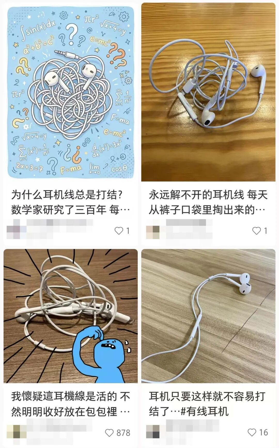 如何解开有线耳机的结,是一个哲学问题。(图/小红书截图)